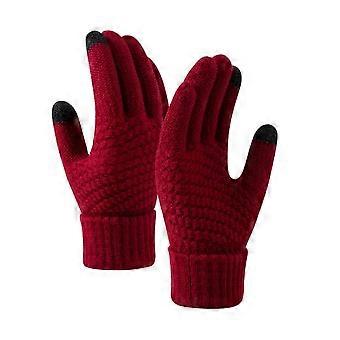 1 Pair Women Winter Gloves Thick Touch Screen Windproof Plush Knitted Color Matching Elastic Warm Five Fingers Anti-slip Soft Cozy Regular Fit