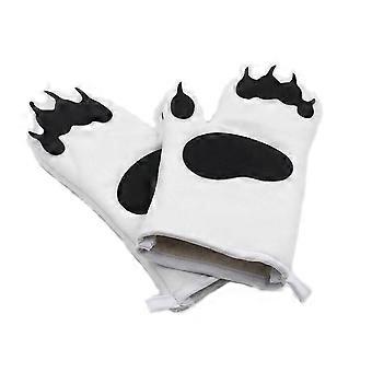 1 זוג כפפות מיקרוגל כפפות בידוד תנור טופר דוב חמוד לבן