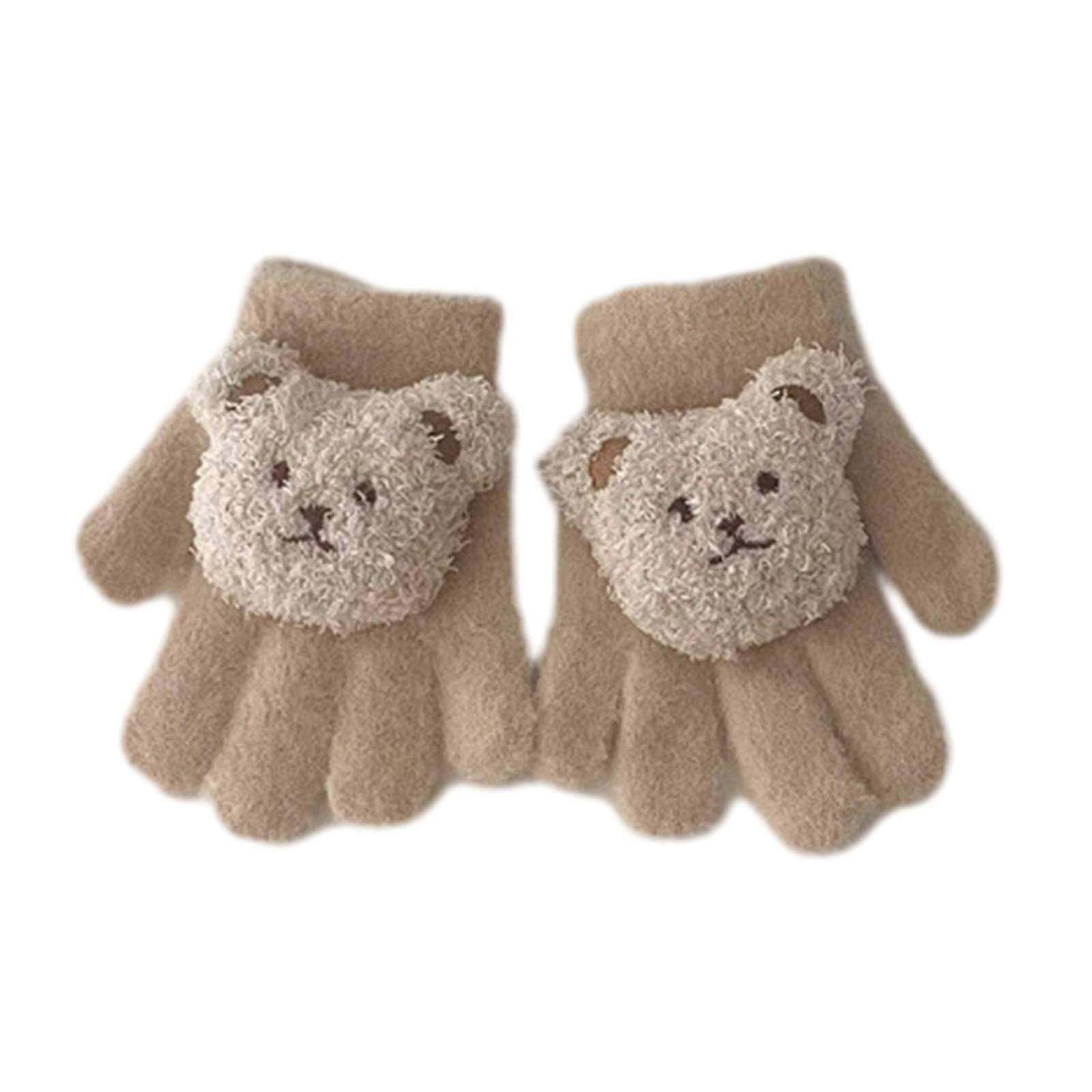 1 Pair Kids Knitting Gloves Full Finger Knitted Gloves Winter Stretch Gloves Warm and Stylish Cartoon Bear Mittens Yellow