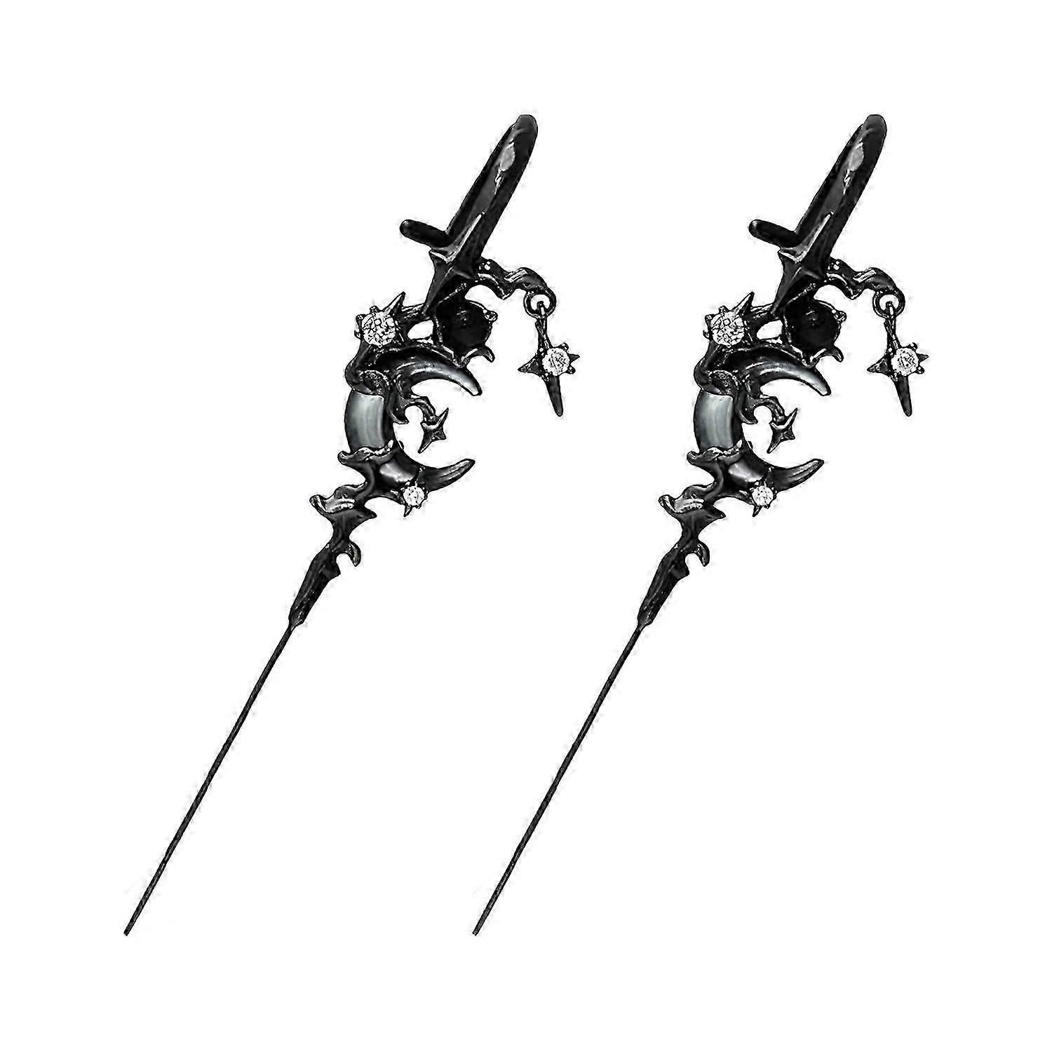 1 Pair Ear Needles Myth of The Moon Punk Rock Dark Style Individual Piercing Earrings Star Moon Ear