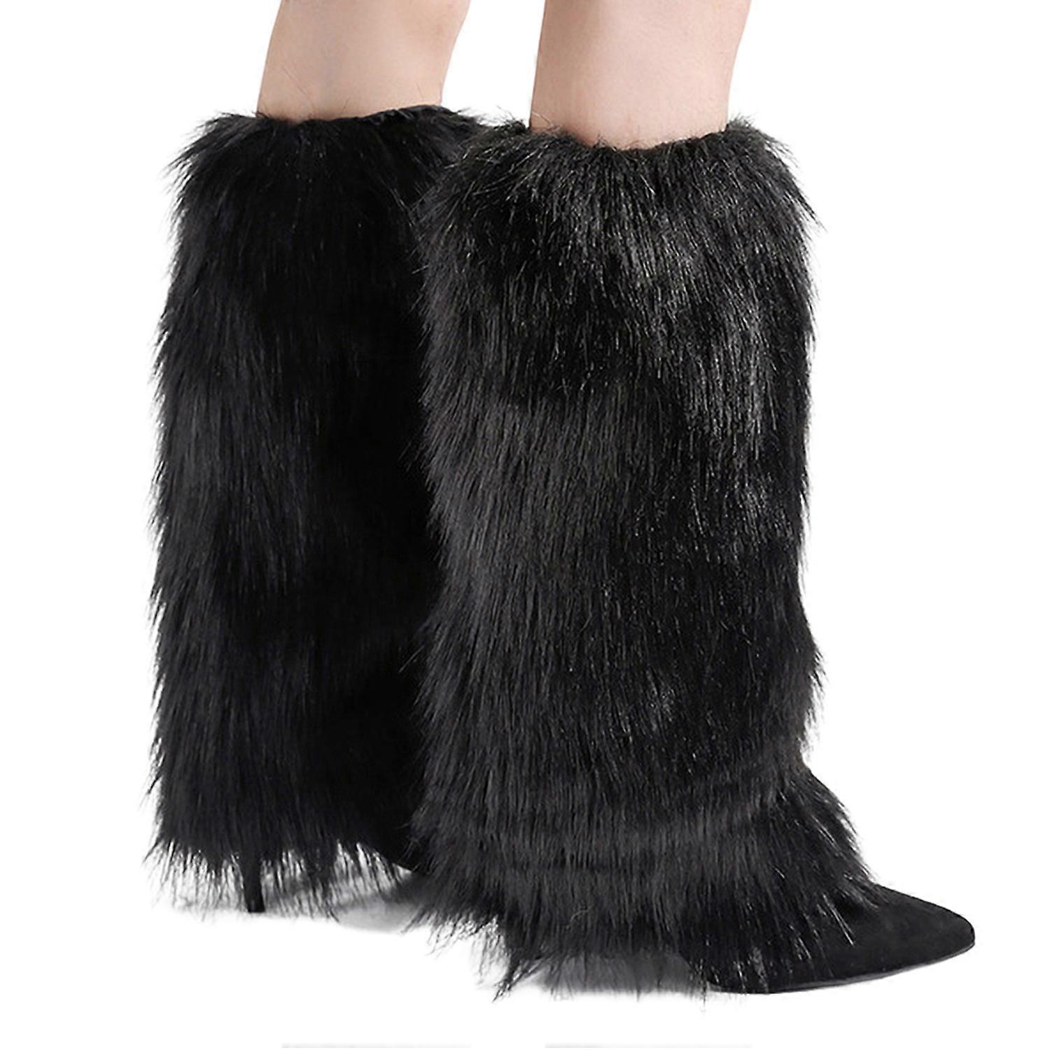 1 Pair Faux Fur Leg Warmers for Women Girls Plush Soft Boot Cuff Sleeves Fluffy Furry Leg Sleeve for