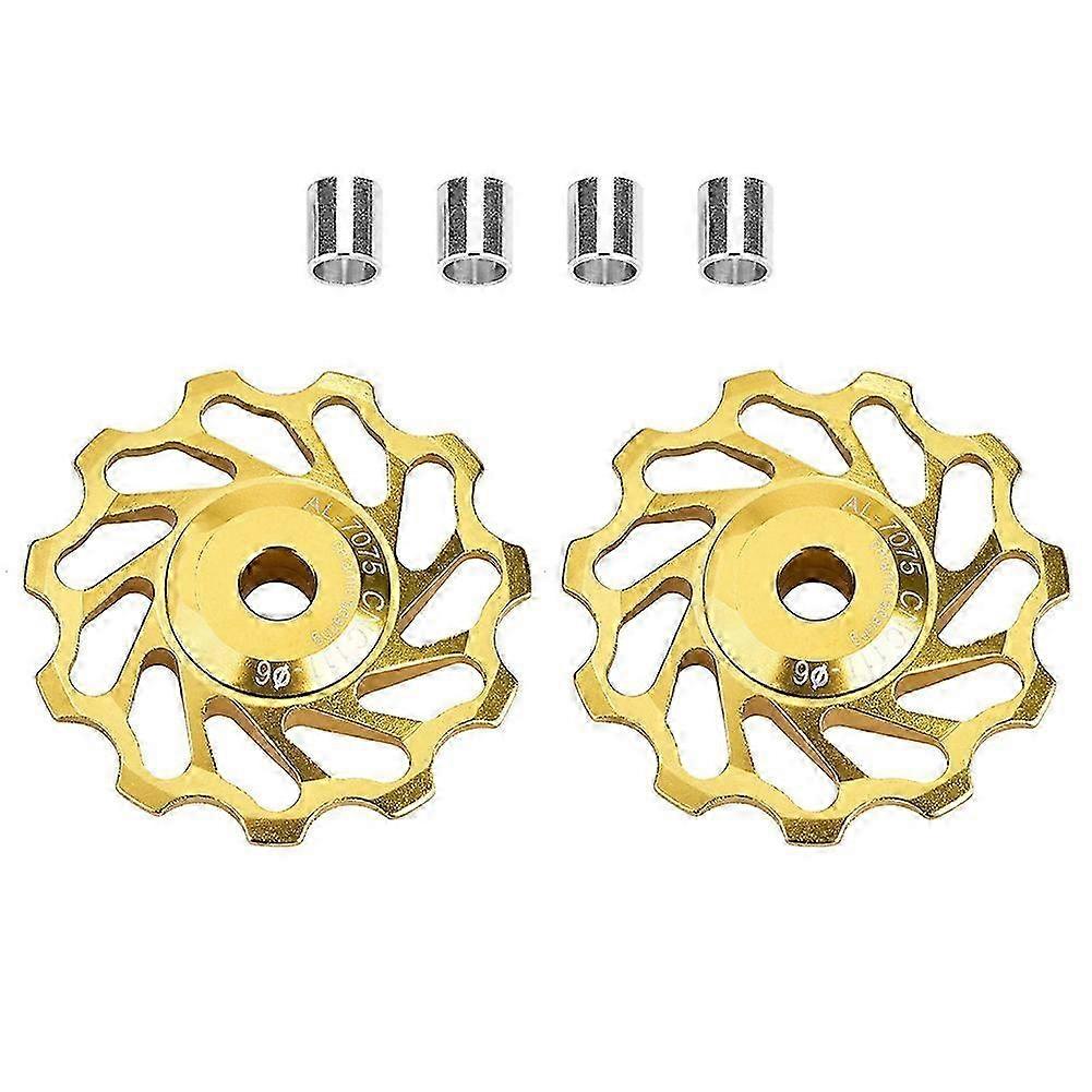 1 Pair Ceramic Bearing Rear Pulley Jockey Wheel Bike Guide Roller for Certain Brands (11T, Golden)