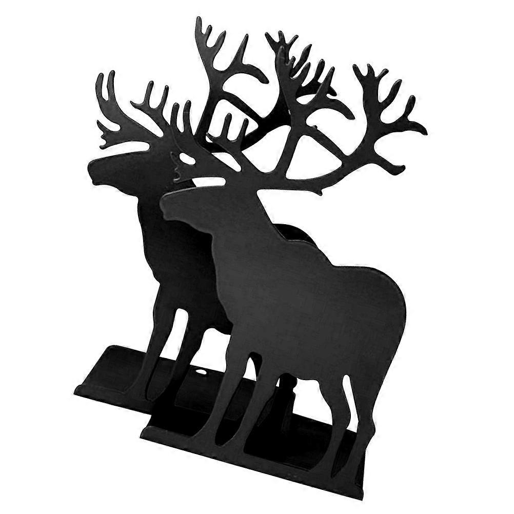 1 Pair Delicate Elk Design Book Stand Bookend Iron Book Stand for Book Use (Black)