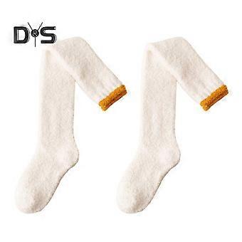 1 Pair Women Winter Socks Thickened Coral Fleece Knee Length Long-tube High Elasticity Wrapping Anti-slip Floor Socks Comfort Warmth Sleeping