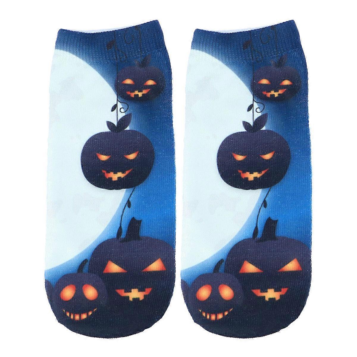 1 Pair Women Low Cut Ankle Socks Halloween Theme Printed Elastic Non-slip All Seasons Sneaker Short Socks (Pumpkins)
