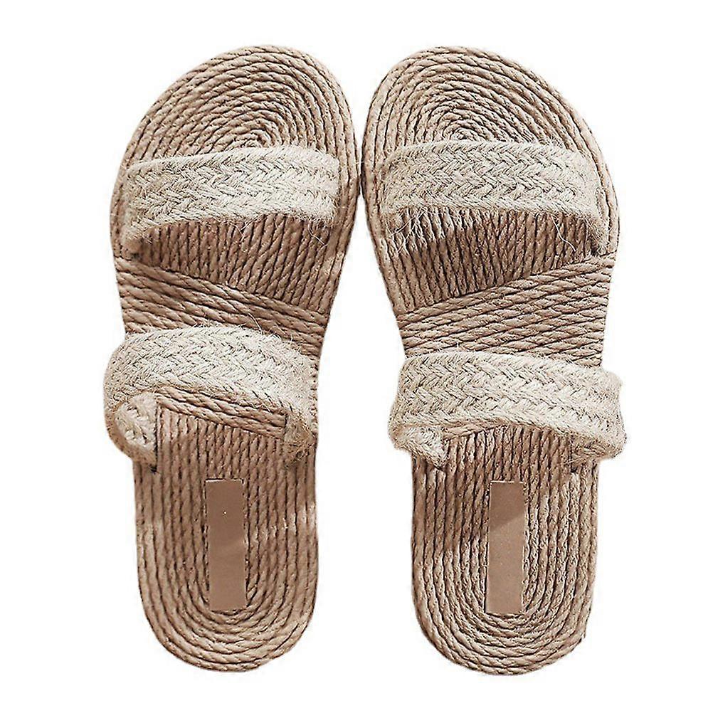 1 Pair Straw Woven Hemp Sole Sandals Straw Sandals Beach Slippers for Women
