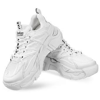 Note: The size sticked to or printed on the shoe or the sole is Chinese size, please refer to the size of the corresponding country and the centimeters in the description or picture. Description Looking for a stylish and comfortable pair of sports shoes? Look no further than our womens chunky sneakers! These shoes feature a thick sole that helps to reduce pressure on your feet. Our shoes are both durable and long-lasting, ensuring that they will stay in great condition for years. Features - Color: White -Material:PU - Size 40: 29.00X19.00X9.00cm/11.40X7.47X3.54in - Size 40: 25.0CM, 8US, 5.5UK, 39EU, 9.825Inch - Chunky sneakers: These classic sports shoes are both fashionable and comfortable, making them a great choice for any occasion. - Comfortable thick soles: The thick sole design reduces pressure on your feet, providing a comfortable fit that is suitable for all-day wear. - Selected materials: Made from durable, wear-resistant PU materials, these womens sneakers are built to last and won't easily deform over time. - Non-slip soles: The soles feature a variety of patterns that provide a firm grip and prevent slipping, making them suitable for any outdoor activity. - Fashionable and versatile: These sport shoes are suitable for a variety of outfits, whether you're wearing pants or a skirt, making them a versatile choice. Packing list1 x pair of sneakers
