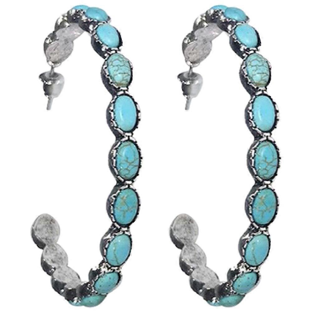 1 Pair Women Earrings Metal Earrings Vintage Earrings Turquoise Bead Earrings C Shape Earrings