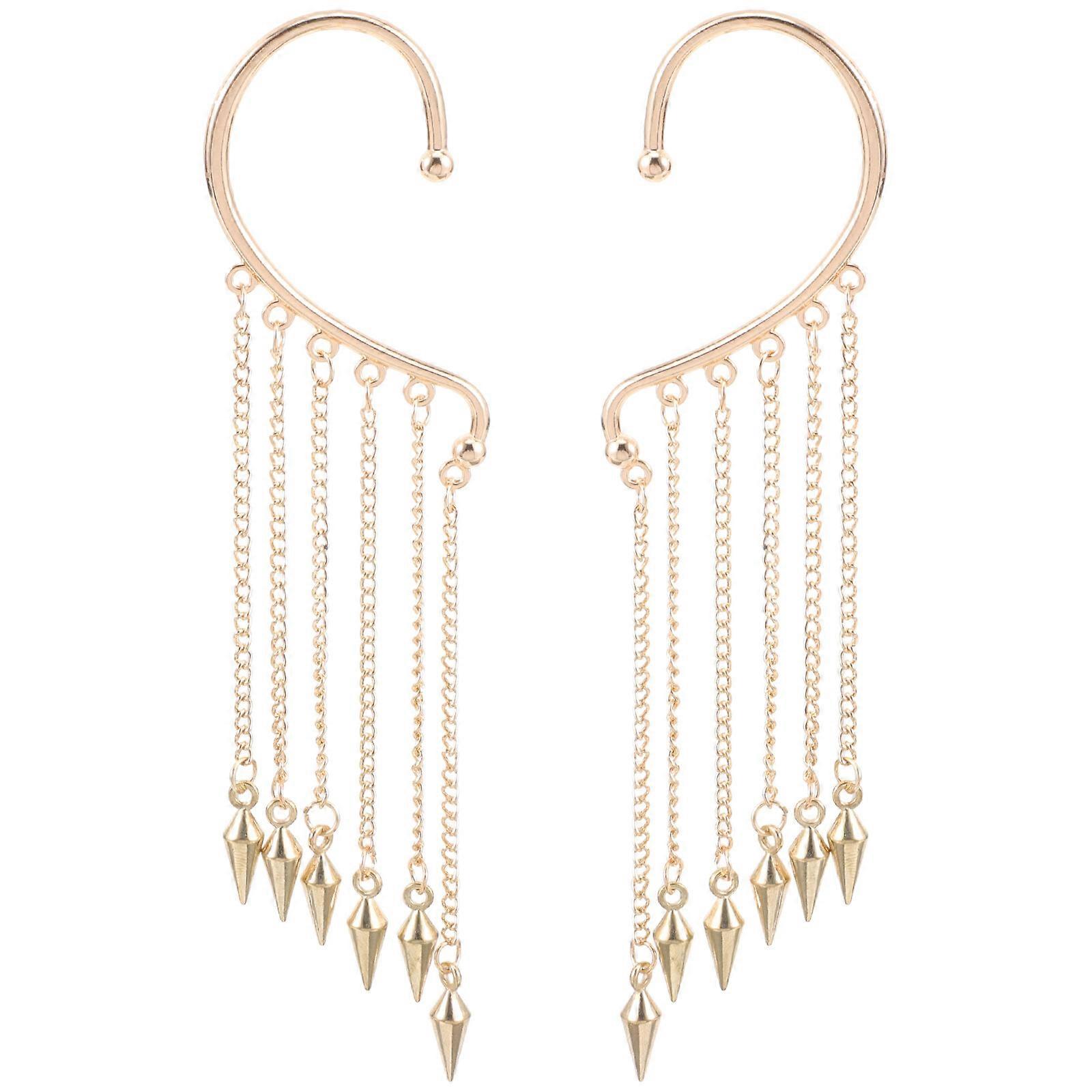 Description These ear cuff earrings for womencan satisfy your needs with comfortable texture and a beautiful design. Theear cuff chain earrings can be worn by many elegant ladies and young women. Light weight, easy to wear, a good costume accessory for daily dressing. Features -Color:As Shown -Material:Alloy -Size:14.50X3.30X0.50cm/5.70X1.30X0.20in - Trendy tassel chain design for a stylish look, cuff earrings have elegant color for a luxurious feel. - Perfect accessory, suitable for blouse, dress, skirt, jeans, or sweater to make you unique and classy. - Suitable for non-pierced and pierced ears, easy to wear, lightweight for comfortable wear. - Cuff chain earrings can match your wear for different occasions. An accessory to keep for practicality. - Tassel chain earrings can be creative and amazing gift for friend or comfortable ear accessory for your daily wear. Packing list1 x pair of hanging earrings