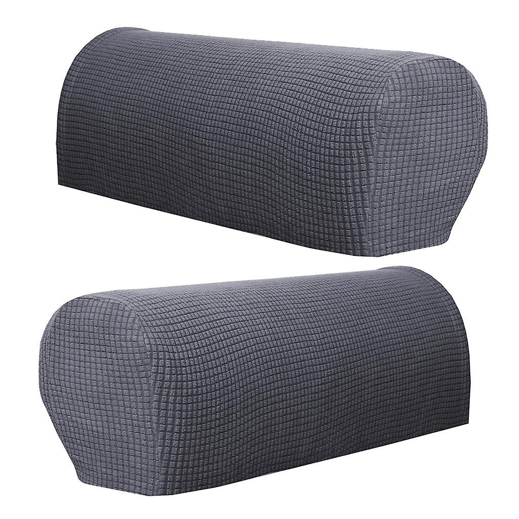 1 Pair Flannel Checked Furniture Sofa Armrest Covers Protectors Gray