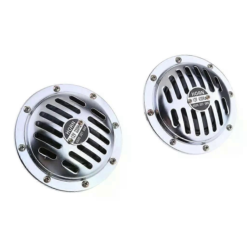 1 Pair 118Db Car Motorcycle Waterproof Horn Chrome Disc Type Hi Low Horn Set 415/350 Hz