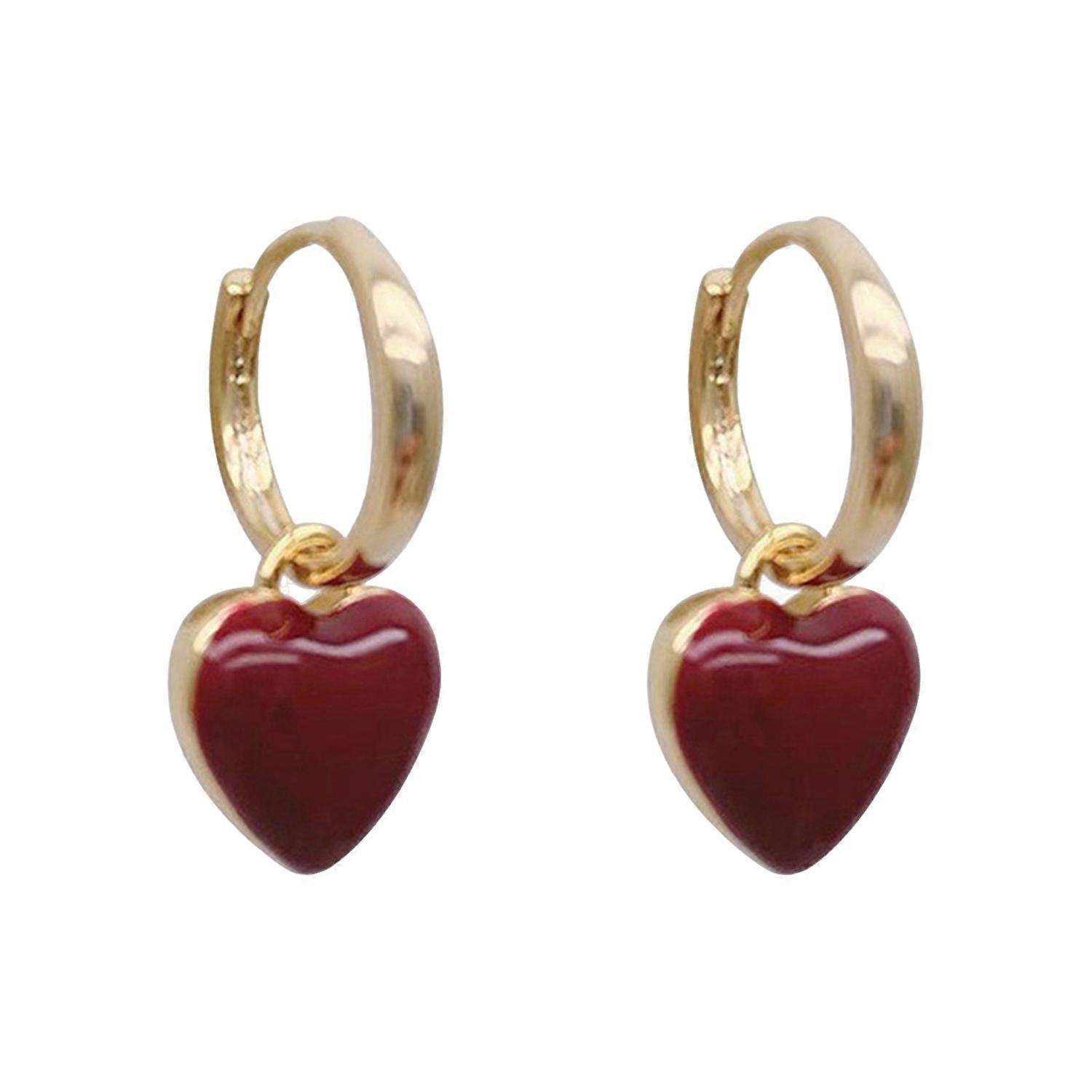 1 Pair Laly Leverback Earrings Heart Geometric Shape Pendant Vintage French Style Oil Dropping