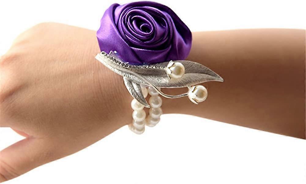 1 Pack - Girls Bridesmaid Wedding Wrist Party Prom Hand Flower Wristband (Red)