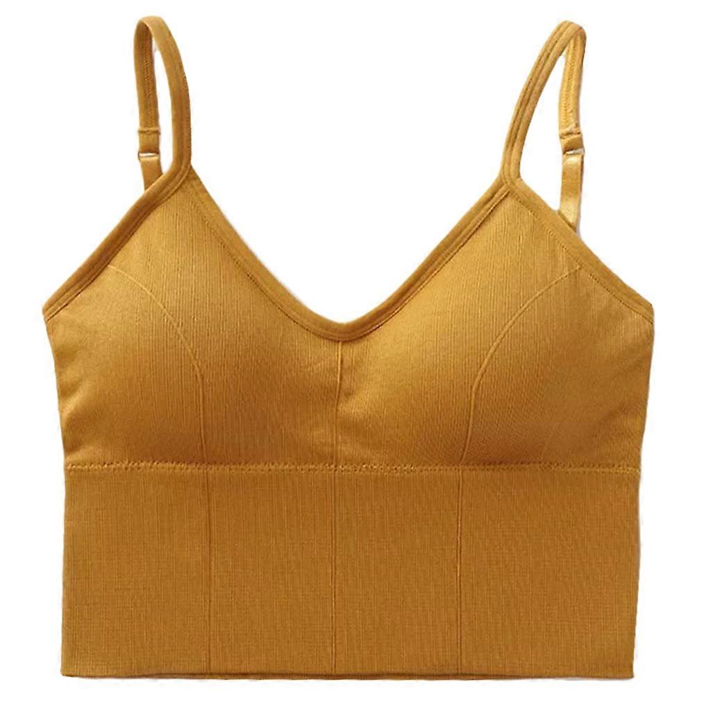 1 Piece Women Sling Tube Simple Seamless Gathered Casual Bra Top Detachable Chest Pad Ladies Wrapped Chest Tops Yellow