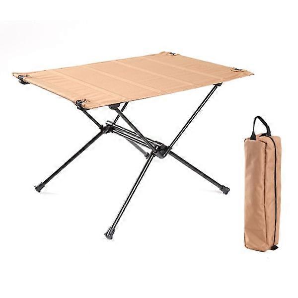 1pc Khaki Outdoor Camping Table, Portable Folding Desk, Strong Load, Ultralight Aluminum, Climbing Spike