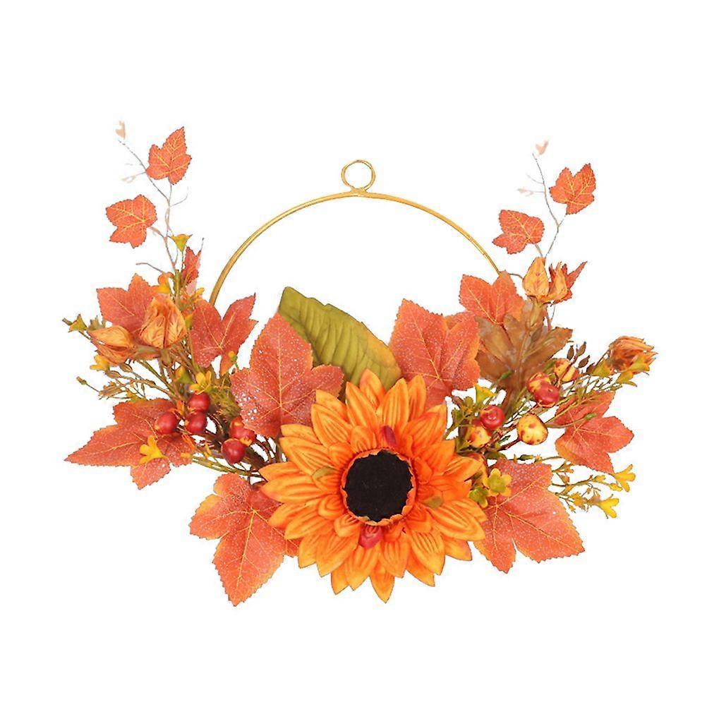 1Pc Adorable Sunflower Wreath Thanksgiving Emulation Garland Chic Wreath Orange