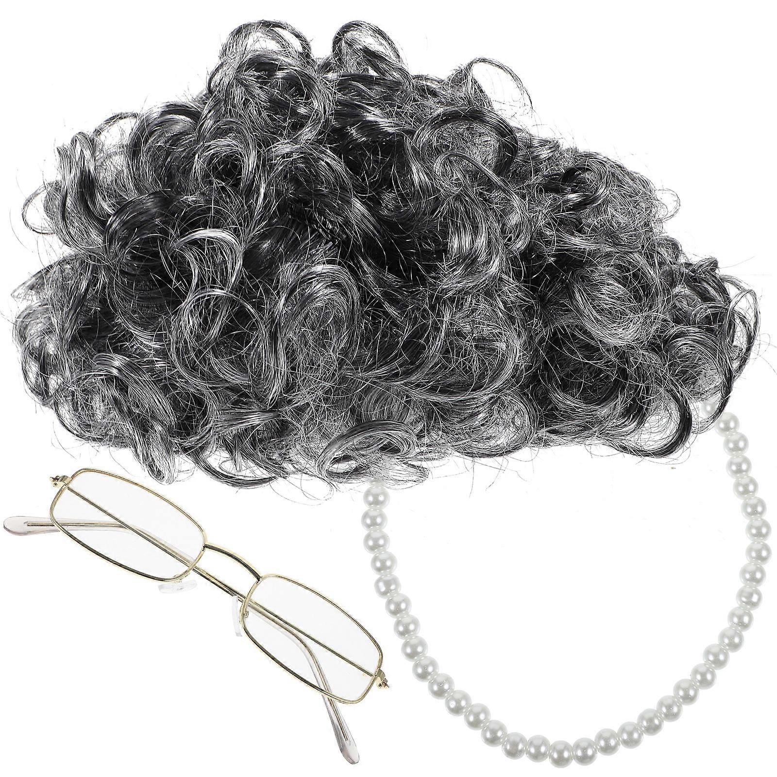 1 Set Old Lady Wig Cosplay Kit Performance Props Grandmother Costume Party Supply