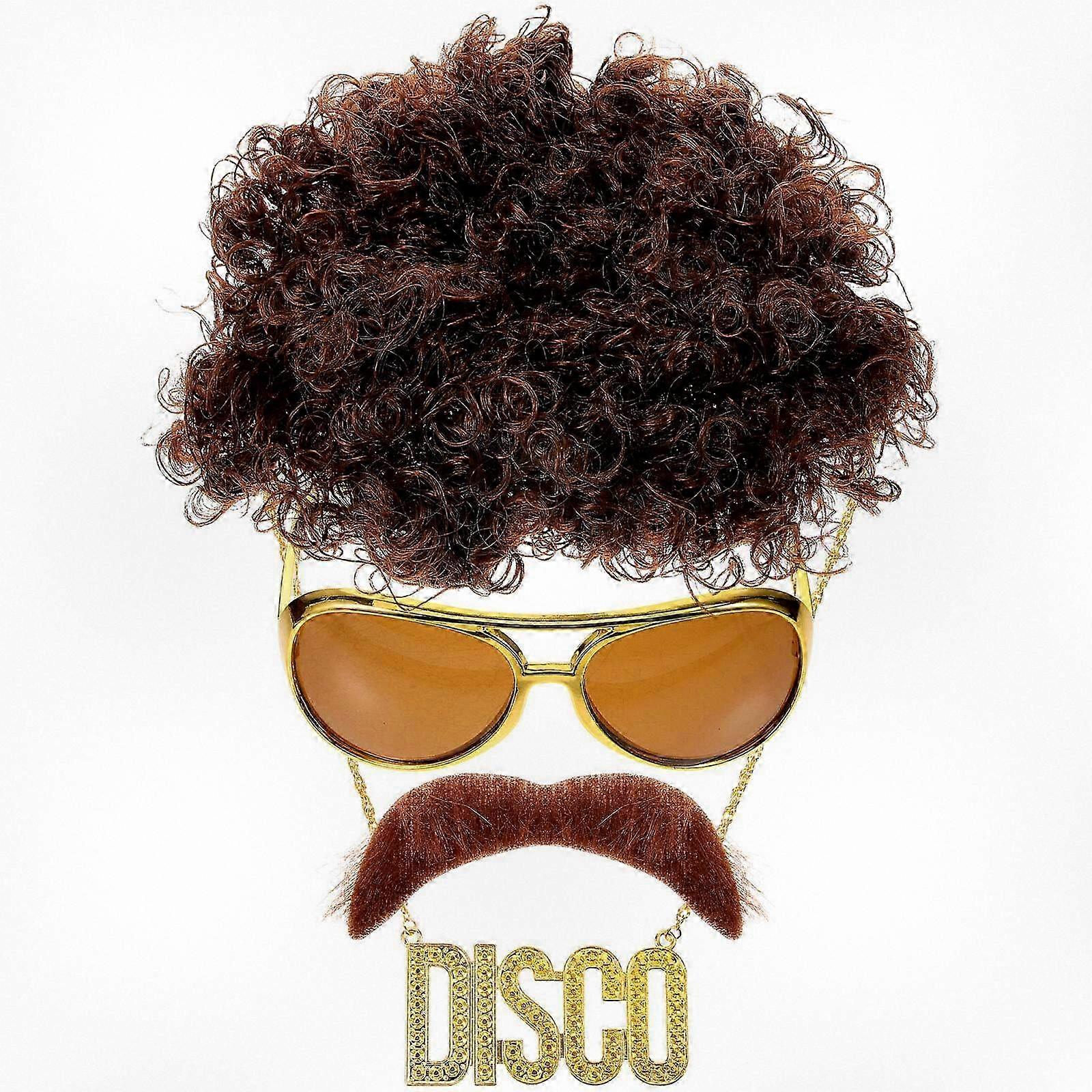 1 Set Disco Party Wig Fake Gold Chain Necklace Sunglasses 70s Costume Accessories for Various Styles