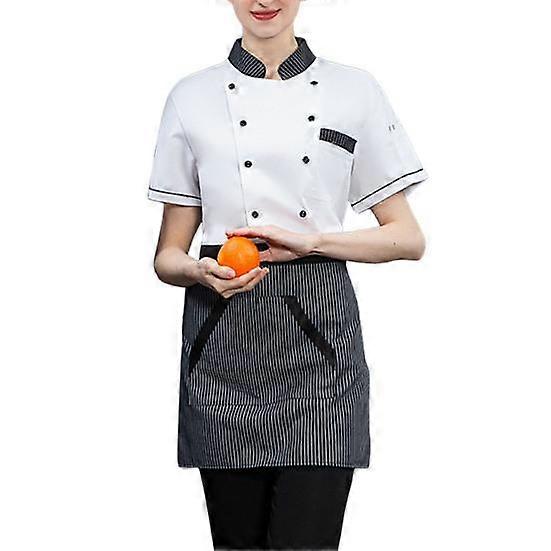1 Set Unisex Chef Shirt Apron Set Kitchen Double-breasted Short Sleeve Stand Collar Soft