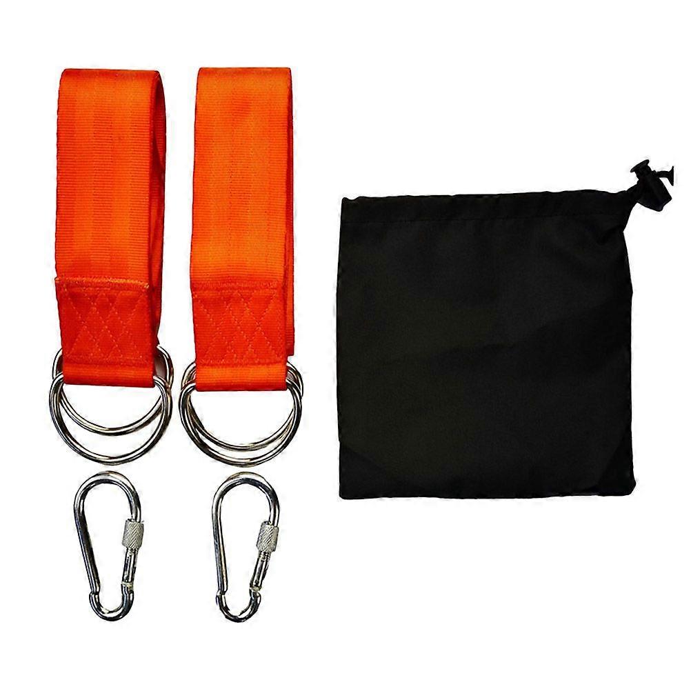 1Set Outdoor Heavy Duty Swing Hanging Strap Set Yoga Hammock Tree Straps with Lock Carabiners D Ring Storage Bag (Orange)