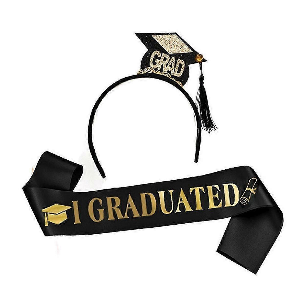 1Set Grad Cap Headband Graduated Satin Sash 2024 Graduation Party Decoration Supplies Photo Props Mini Bachelor Hat