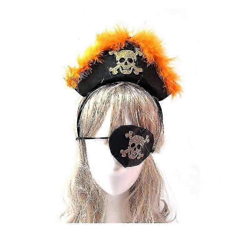 1 Set Pirate Hat Headband Skull Crossbone Eye Patch Korean-Style Pirate Cap With Plume Eye Mask For Kids Halloween Masquerade Caribbean Cosplay Costum