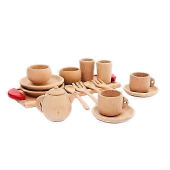 1Set Wooden Tableware Tools Tea Pot Tea Cup Teatime Party for Play Toy Dollhouse Multicolor