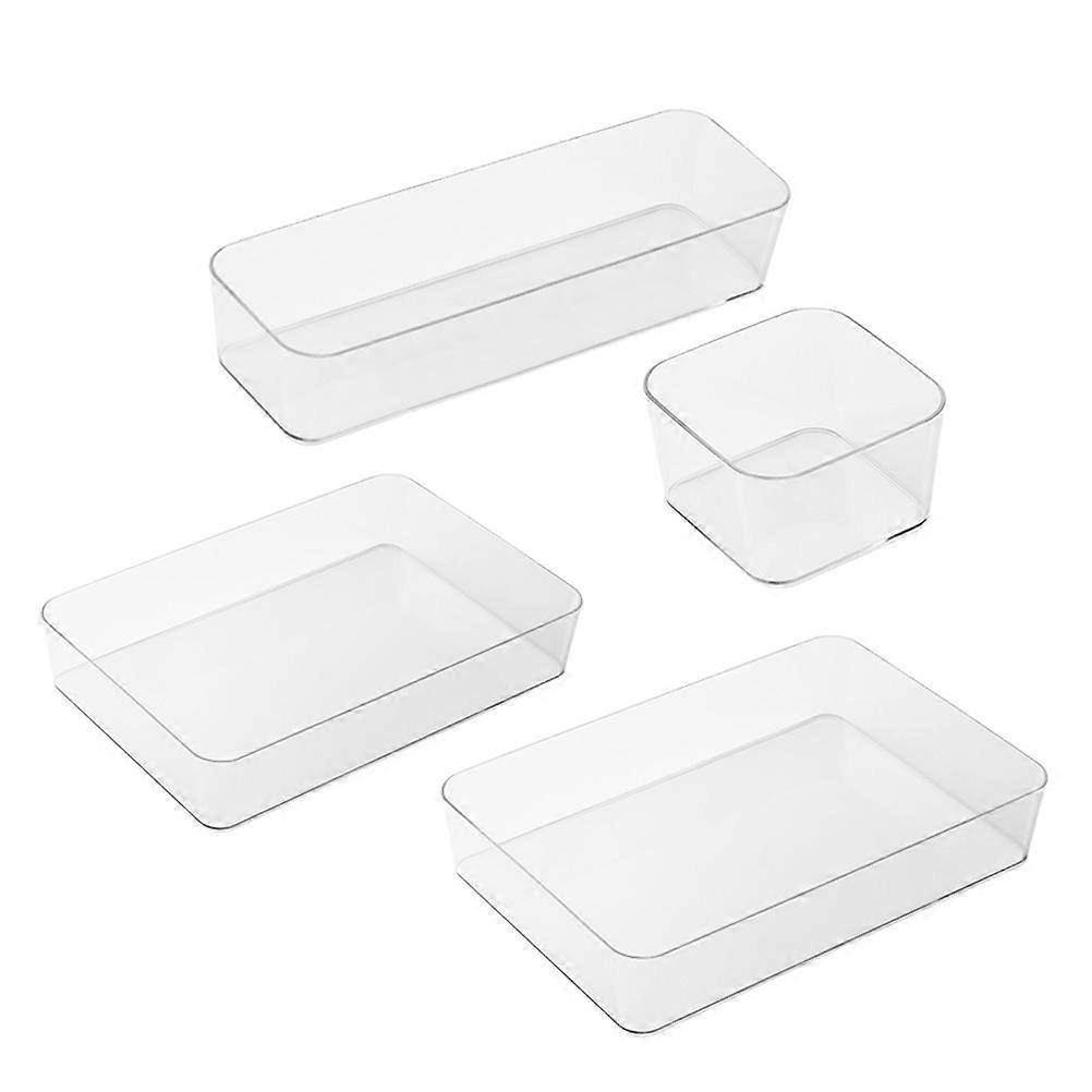 Description The drawer organizer set is perfect for organizing your office desk, cabinet, or vanity. It comes in different sizes. These transparent storage boxes are ideal for keeping your accessories, cosmetics, stationery, and pens neatly arranged. With their versatile design, they can be easily stacked and nested, saving you valuable space. Keep your belongings organized and easily accessible with this practical and stylish storage solution. Features -Color:As Shown -Material:PET -Size:26.00X17.50X5.00cm/10.22X6.88X1.97in (XL) -Size:25.50X8.50X5.00cm/10.02X3.34X1.97in (L) -Size:17.00X8.50X5.00cm/6.68X3.34X1.97in (M) -Size:8.50X8.50X5.00cm/3.34X3.34X1.97in (S) -Versatile storage options with multiple sizes for convenient organization and storage of various items, widely used. -Transparent design of theseclear drawers organizer trays allows for convenient visibility, access to stored items easily. -Suitable for organizing small items in homes and dormitories, these clear drawers organizers can be very useful tool. -Made with stable and sturdy PET materials to make sure durability and longevity, while being easy to clean and maintain. -Multi-functional design: can be used to organize cosmetics, stationery, jewelry, and other small items, tidy desktop. Packing list1 x Drawer Organizer Bin Extra Large Size1 x Drawer Organizer Bin Large Size1 x Drawer Organizer Bin Medium Size1 x Drawer Organizer Bin Small Size
