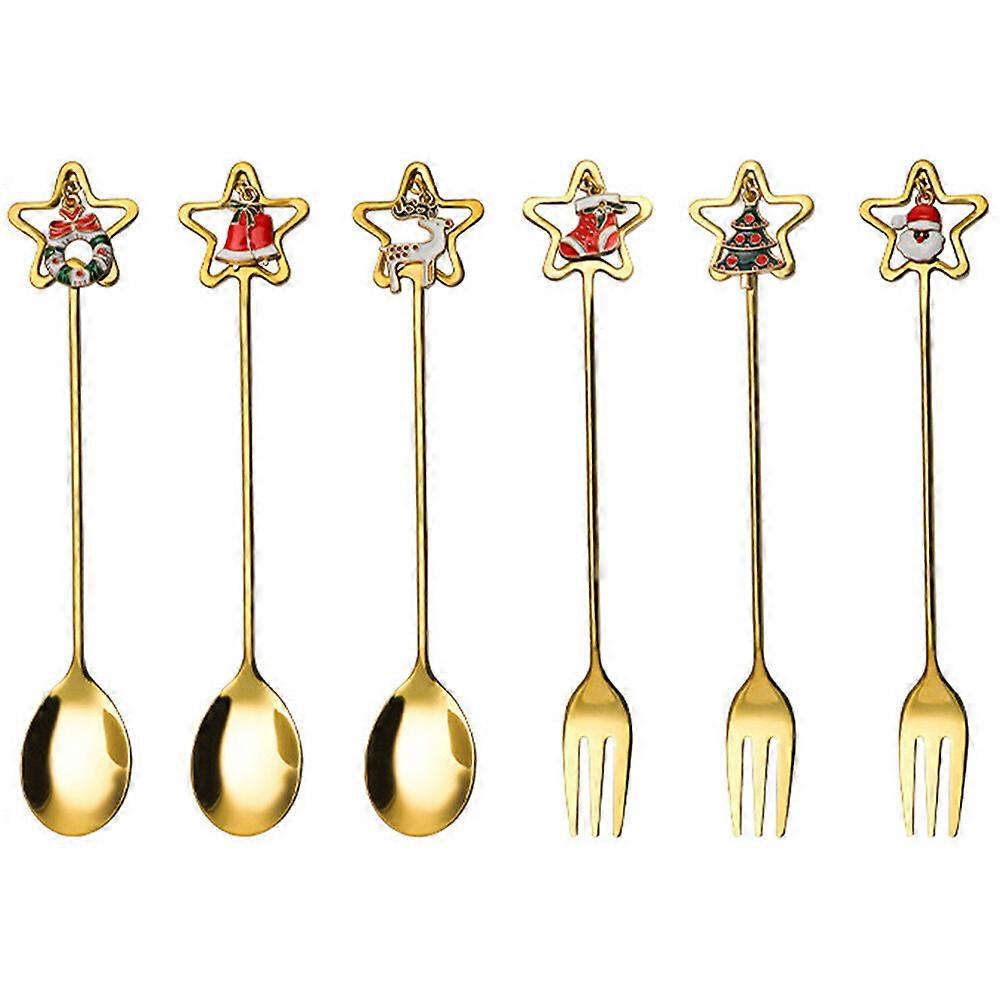 1 Set Christmas Spoons Forks Kit Stainless Steel Coffee Spoon Dessert Fork Christmas Tableware