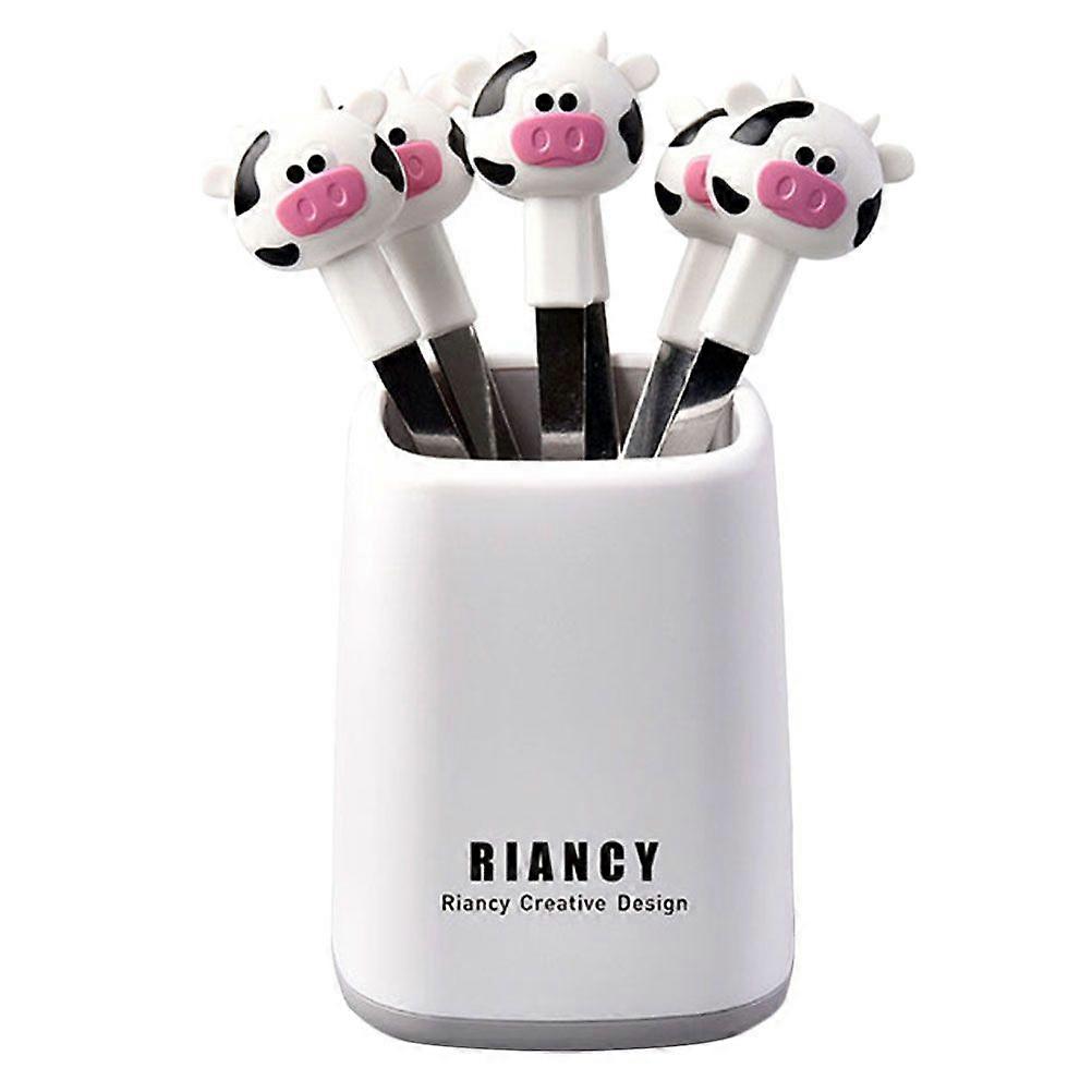 1 Set Cartoon Stainless Steel Fruit Forks Home Food Forks with a Holder