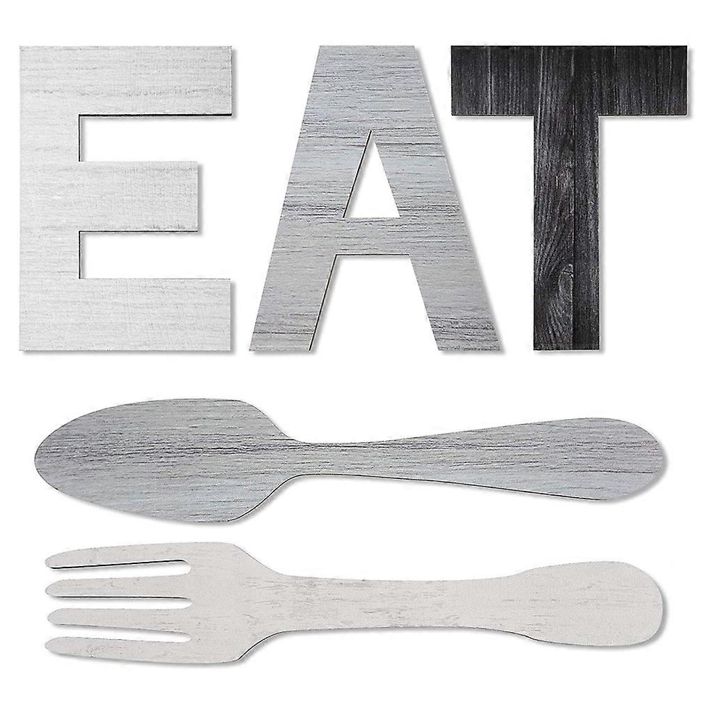 1 Set EAT Fork Spoon Sign Rustic Hanging Wooden Eat Letters Wall Decoration for Dining Room Country Art White gray