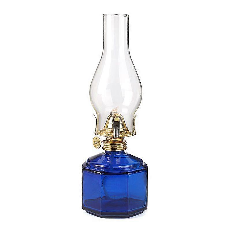 1 Set Rustic Oil Lamp with Wick Vintage Glass Kerosene Lamp for Indoor Home Decor Classic Old Hurricane Oil Light for Emergency Lighting Blue