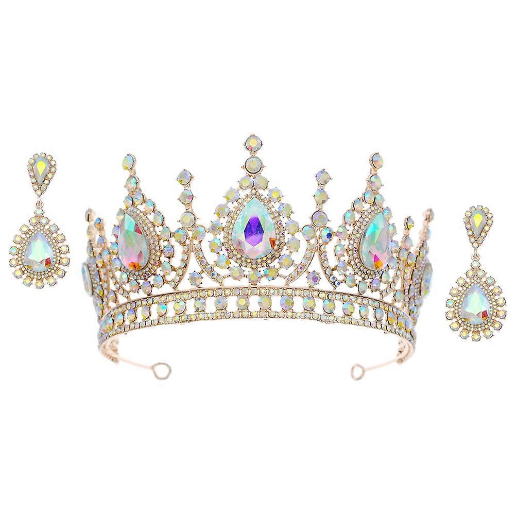 1 Set Women Crown Drop Earrings Bride Rhinestone Tiara Wedding Jewelry Gift