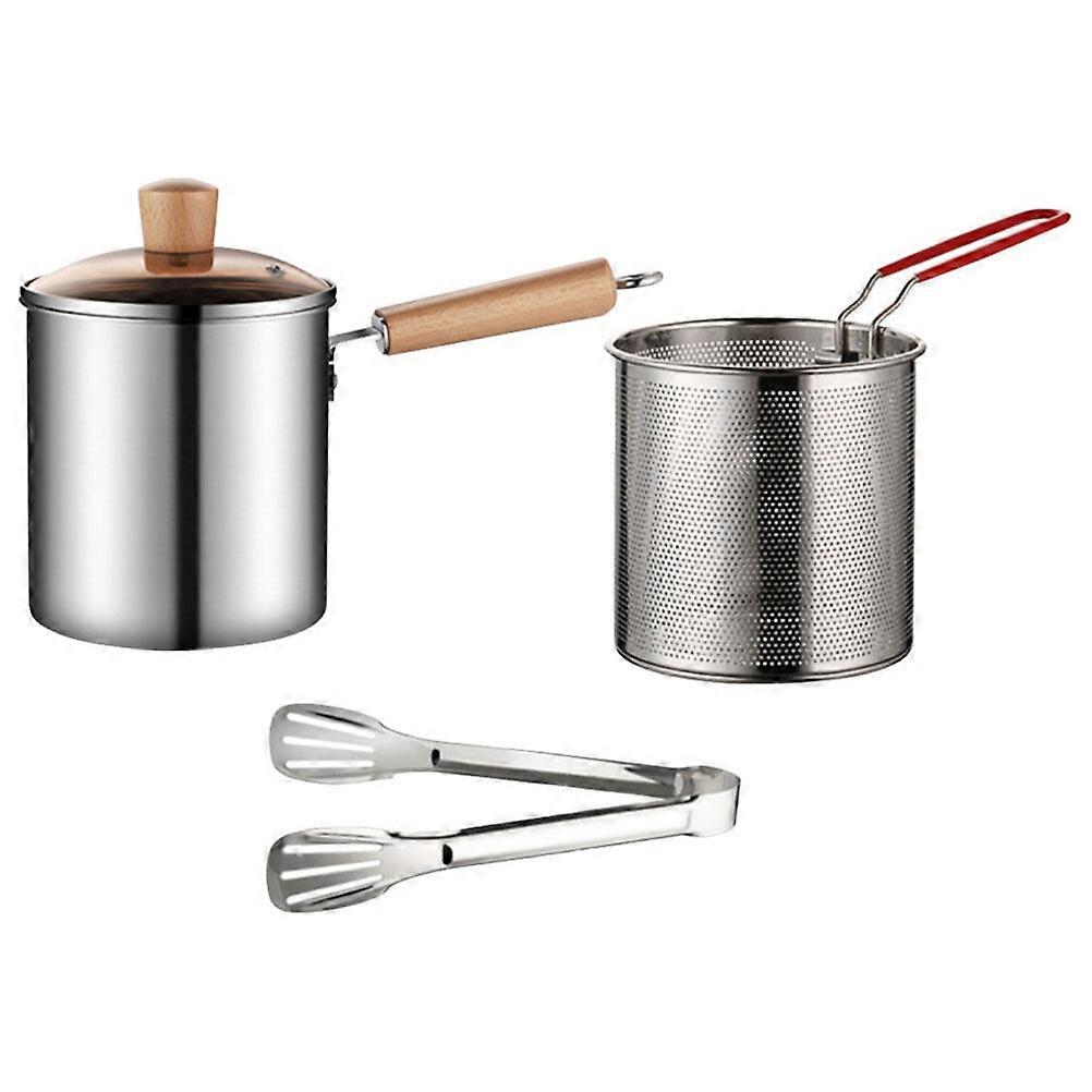 1 Set of Fryer Pot with Basket Small Stainless Steel Fryer Restaurant Home Frying Basket with Tong