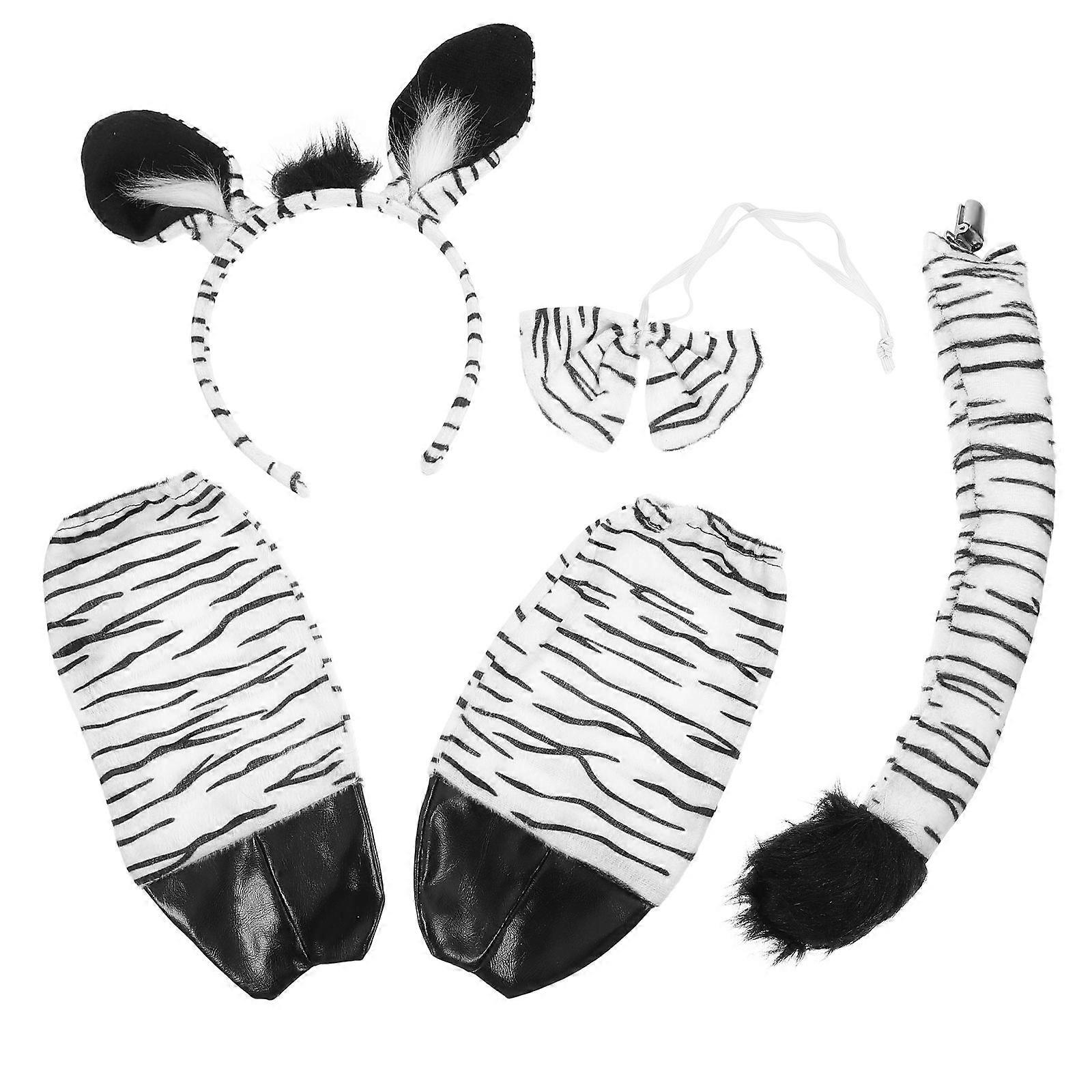 1 Set Zebra Headband Bowtie Tail Glove Animal Fancy Dress Party Decoration Accessory
