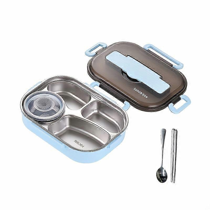 1set 4-grid Insulated Lunch Box With Tableware For Office Workers, Stainless Steel Square Divided Microwave Oven Bento Box With Spoon And Chopsticks,