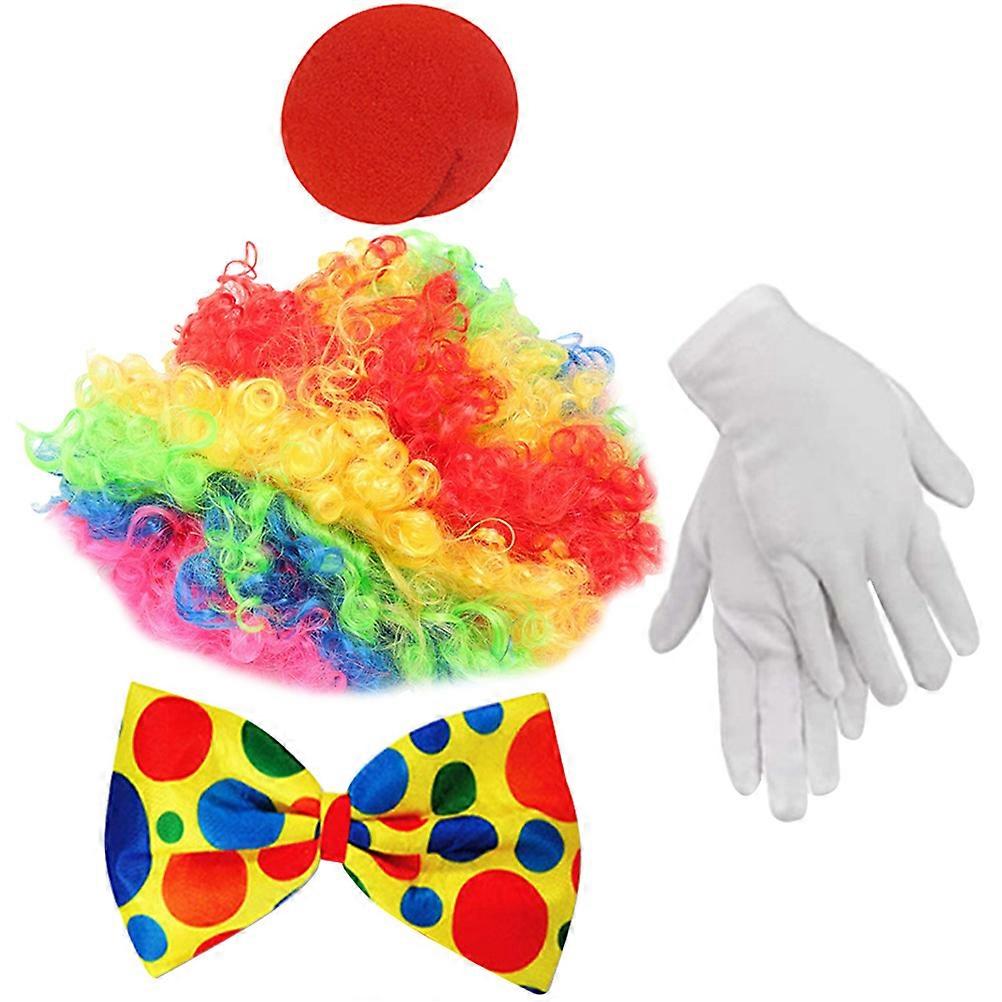 1 Set Carnival Costume Props For Clown Dress Up Featuring Classic Wig Tie And Gloves Ideal For Masquerade And Halloween Events