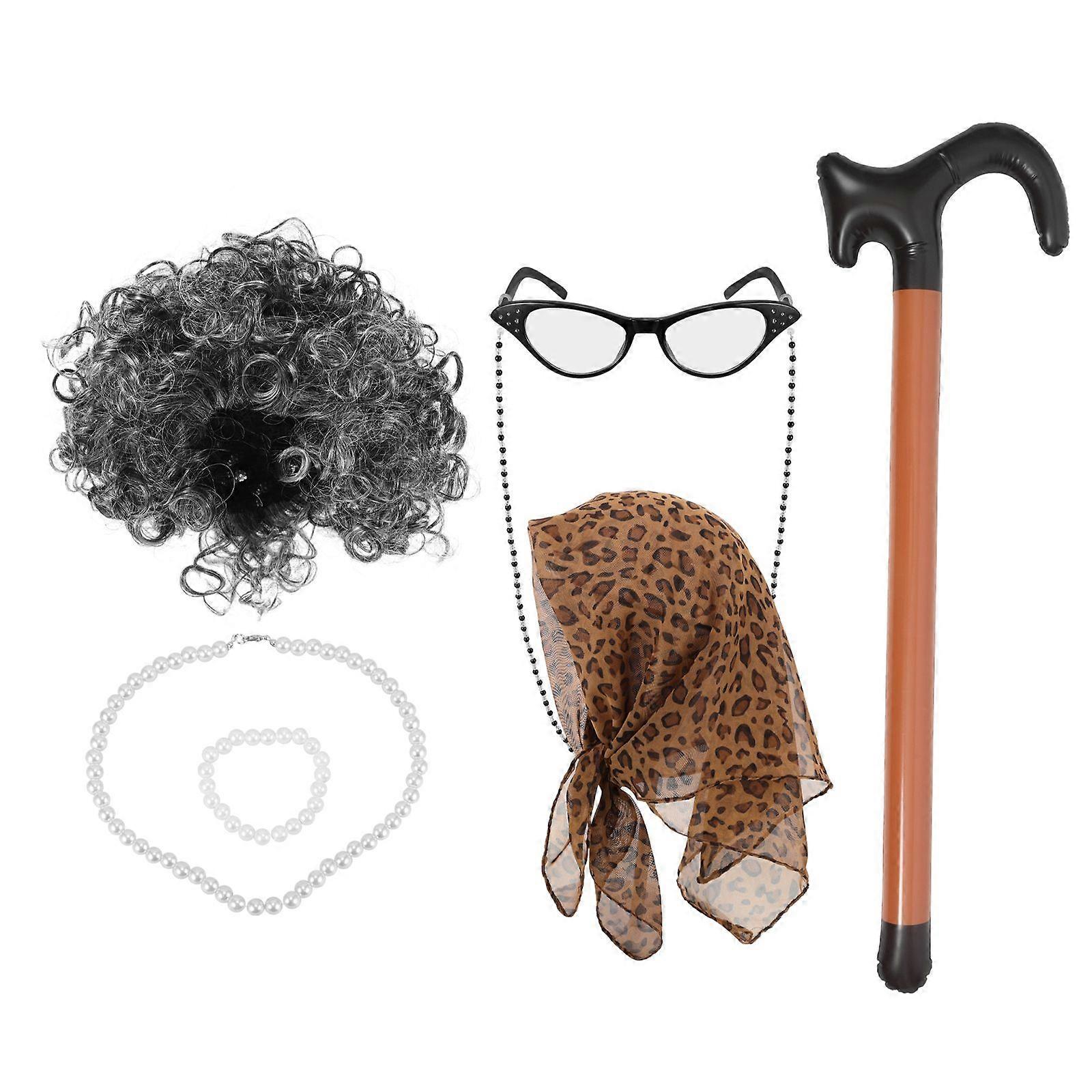 1 set of Old Lady Wig Grandma Wig Elderly Wig Stage Performance Wig Eyewear Necklace
