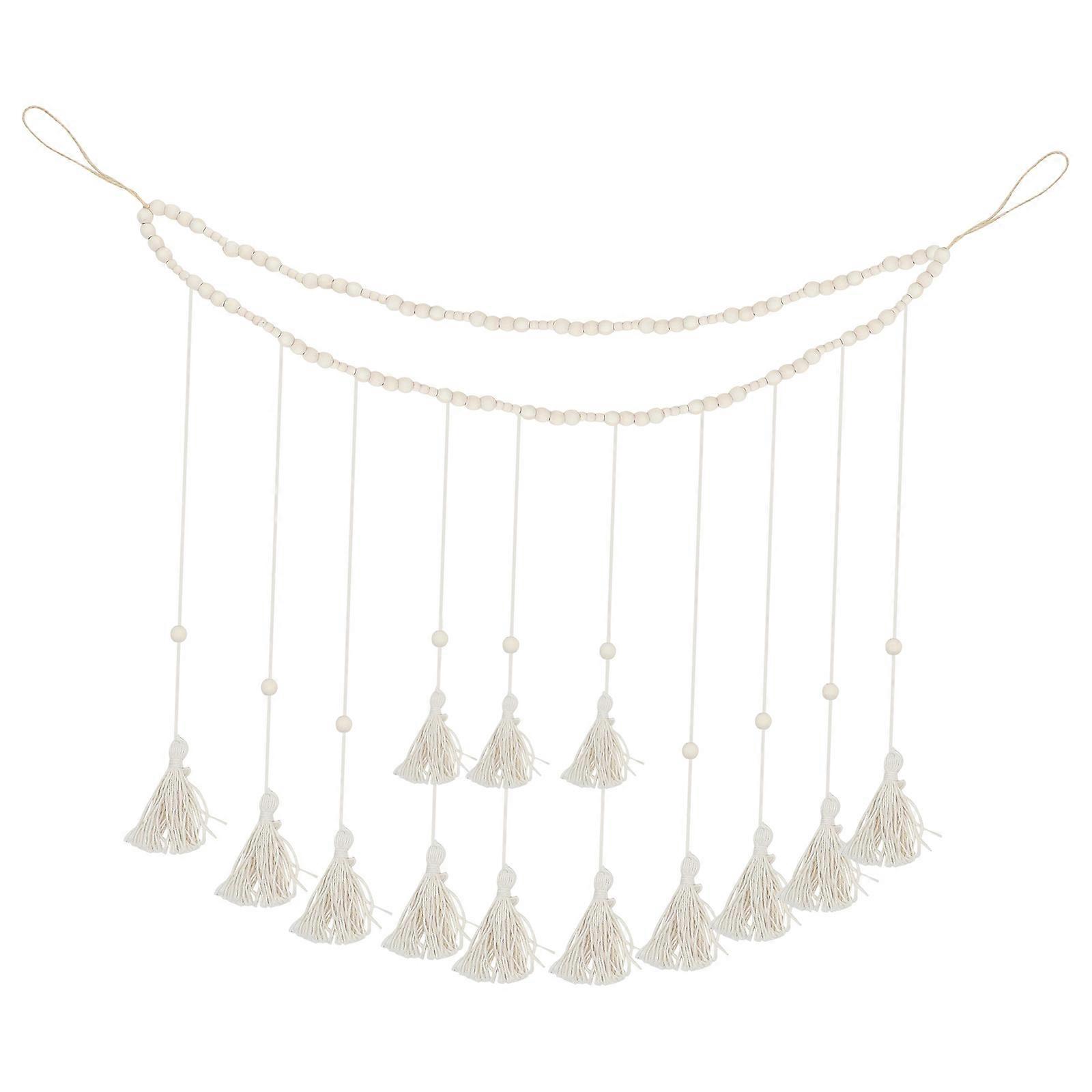 1 Set of Hanging Photo Display Wood Beads Garlands with Tassel Decor Boho Style Collage Photo Hanger