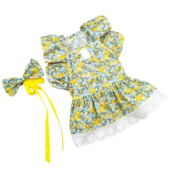 1 Set Pet Dress Ruffled Sleeves Princess Style Dog Dress Flower Print Cat Summer Dress with Headdress Pet Supplies