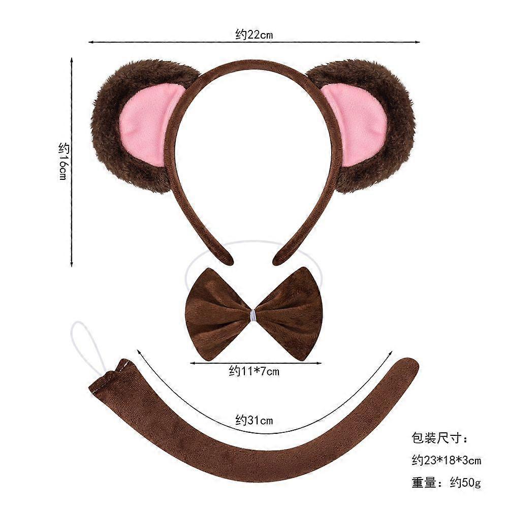 1 Set Monkey Costume: Animal Headband Costume Set - Monkey Ears Bowtie And Tail For Halloween Carnival And Creative Dress-Up Fun