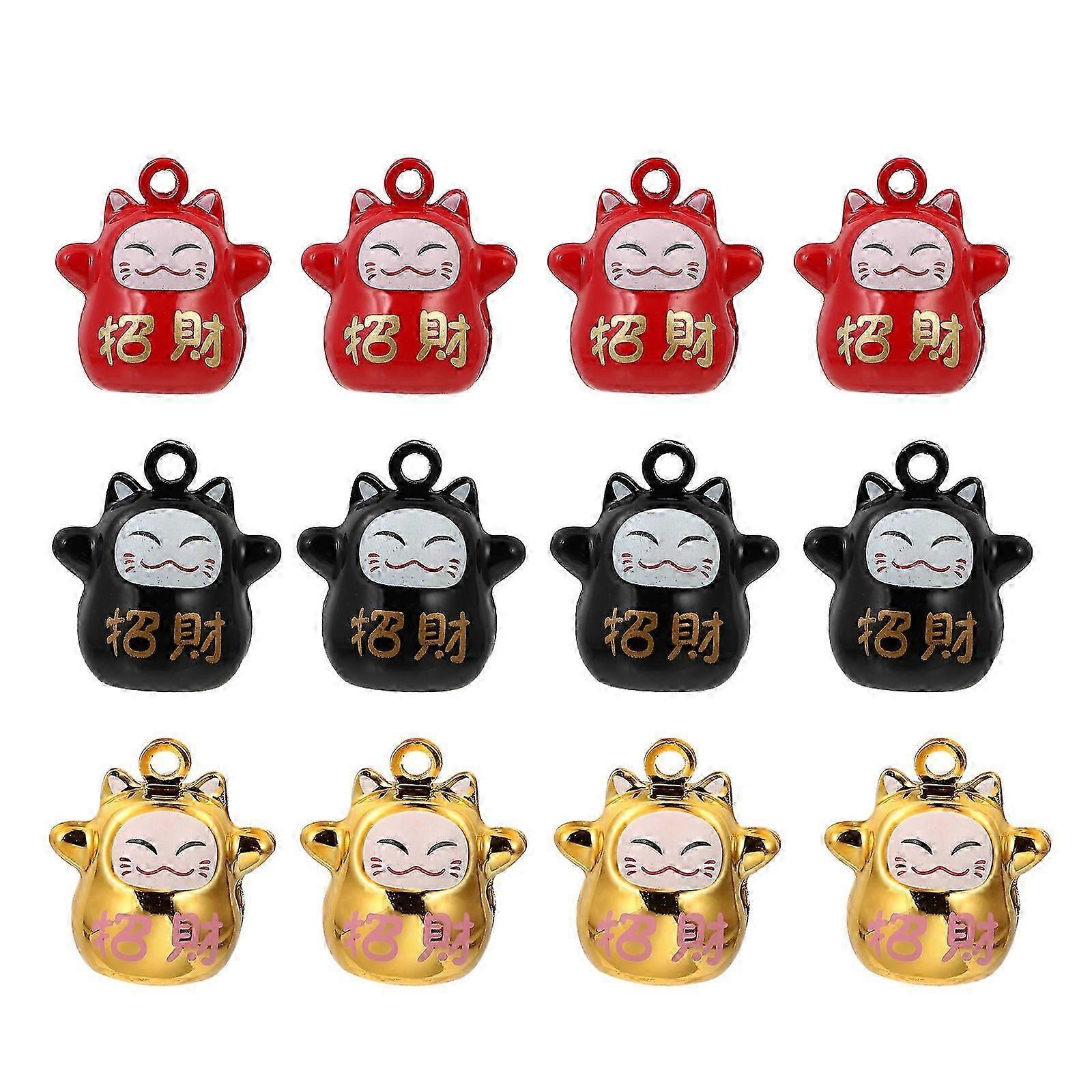 1 Set 12Pcs Fortune Cat Shape Bells Pet Bells DIY Supplies (Red Black Golden)