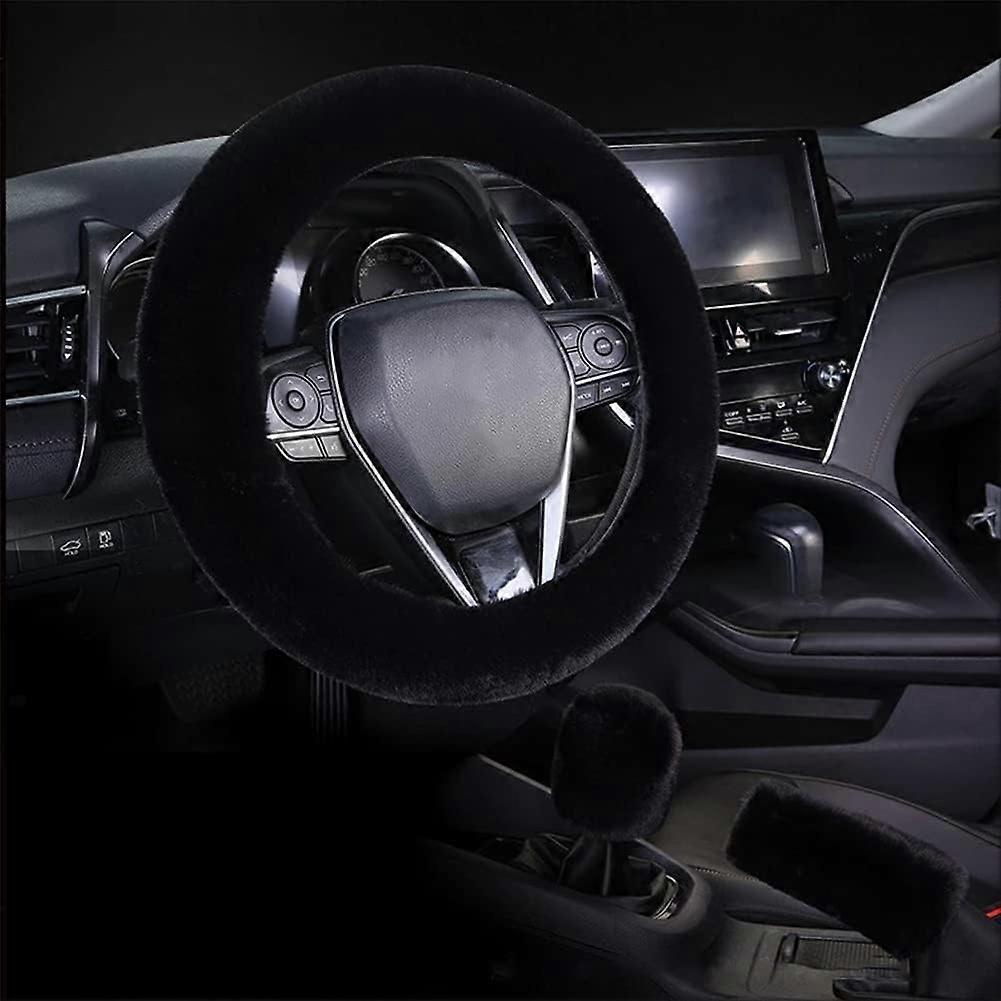 1 Set 3 Pcs Fashion Fluffy Steering Wheel Covers with Handbrake Cover & Gear Shift Knob Cover Non-Slip Car Decoration Winter Warm Shift Plush Cover fo