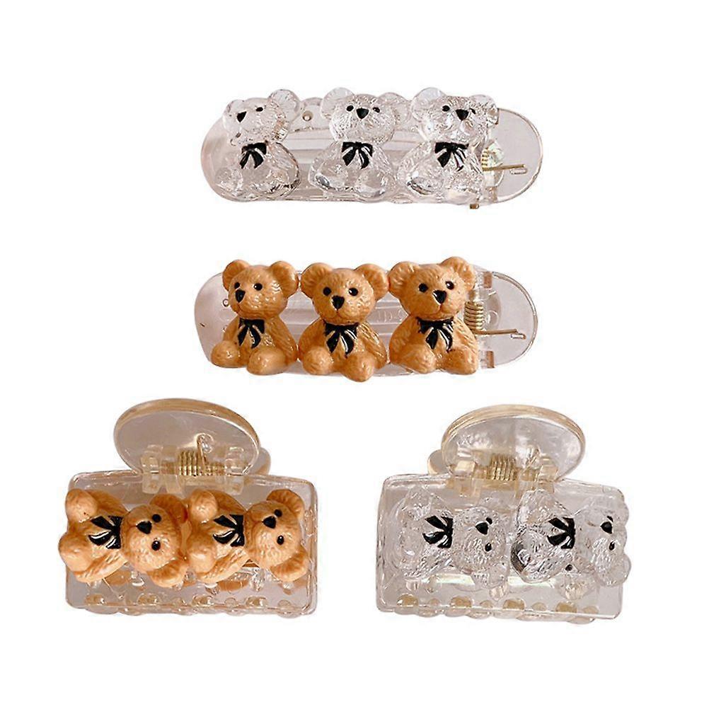 1 Set 4Pcs Lovely Bear Duckbill Hair Clips Hair Clamps (Khaki Transparent)