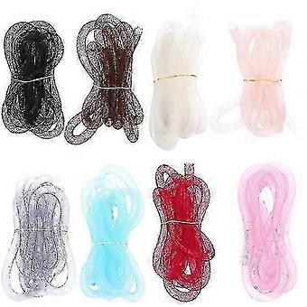 1 Set/8pcs 8mm Mesh Tube Nylon Braid Tube Net Yarn Cord Diy Jewelry Making For Bowknot (1 Strip/2pcs, Random Color)