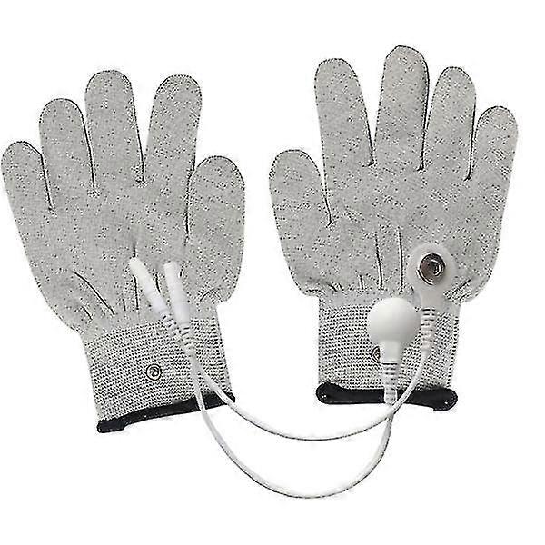 1 Pair White Silver Fiber Electric Therapy Gloves Electric Massage Therapy Accessory- Universal Cott