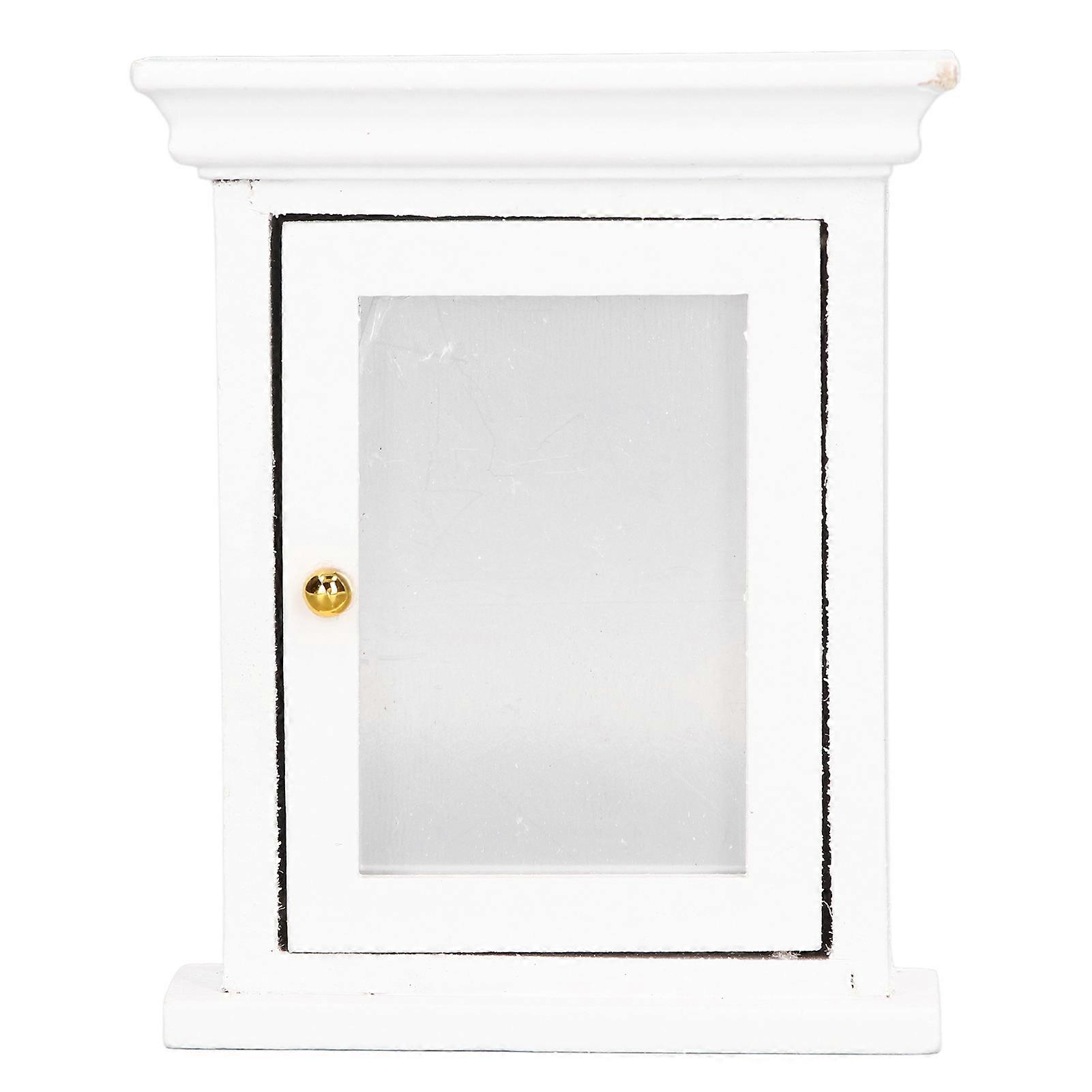 Dollhouse White Mirror Cabinet Miniature Mirrored White Cabinet Mini Bathroom Furniture for 1:12 Doll House