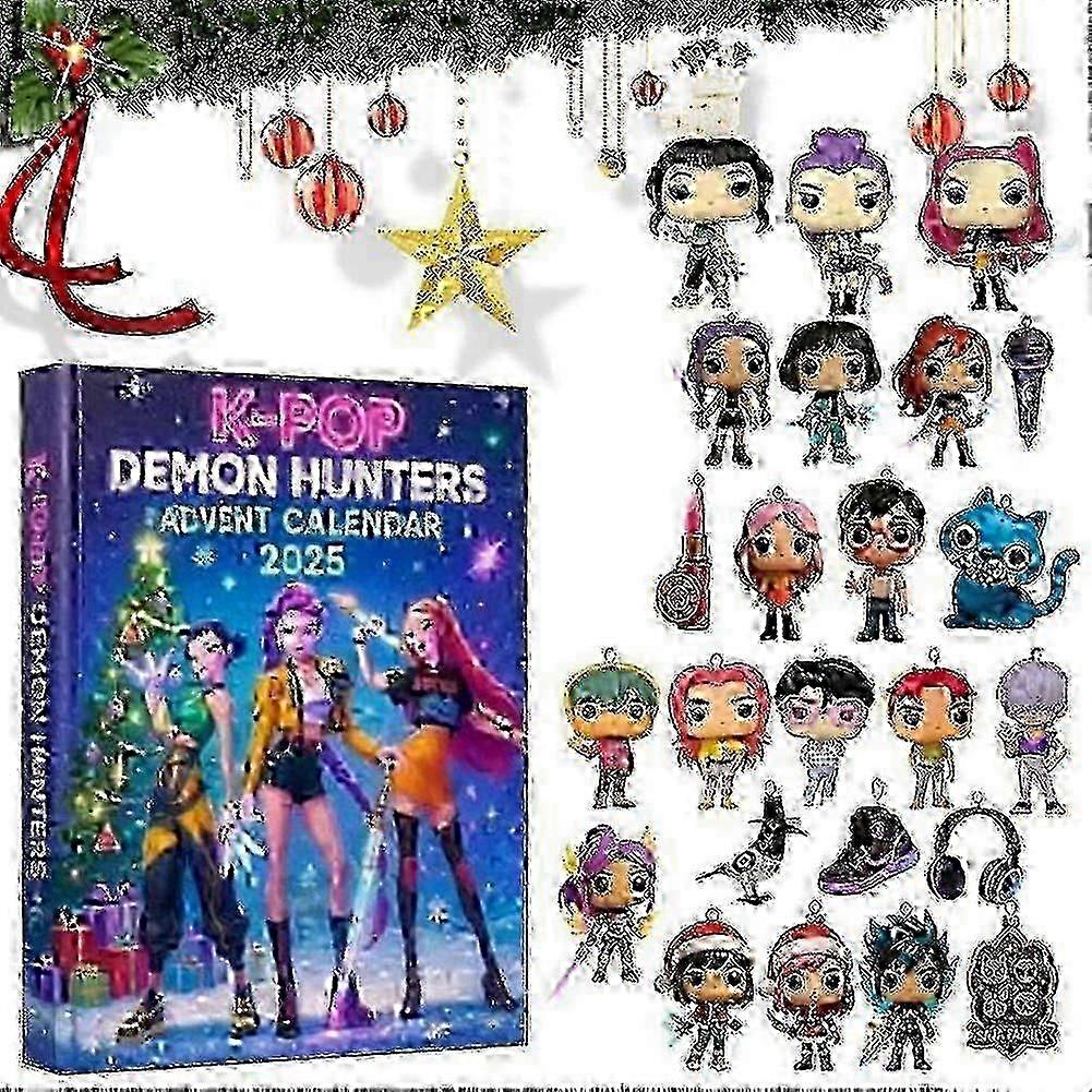 1-3X Kpop Demon Hunters Advent Calendar 2025 Collectible 2D Acrylic Pendant Christmas Tree Decoration Holiday Gifts z