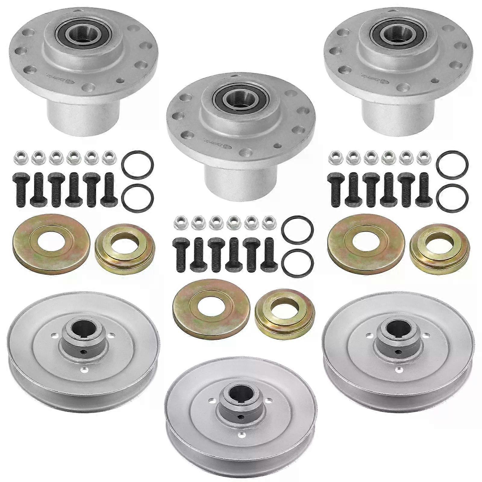 Premium Quality Replacement Part Spindle and Pulley Compatible With Toro Models:Vh16ka362ca (Sn : 920,000 & Up ) - 36"ProLine Walk-Behind Mower 02710 - 32" (Sn: 410000000 - 999999999) 02711 - 36" (Sn: 410000000 - 999999999) 02712 - 48" (Sn: 410000000 - 999999999) 30140 - 48" (Sn: 240000001 - 250999999) (2004-2005) 30140 - 48" 2004-2005 (Sn 240000001-250999999) 30150 - 32" 2004-2005 (Sn 240000001-250999999) 30150 - 32" (Sn: 240000001 - 250999999) (2004-2005) 30161 - 36" (Sn: 240000001 - 250999999) (2004-2005) 30161 - 36" 2004-2005 (Sn 240000001-250999999) 30164 - 32" (Sn: 220000001 - 220999999) (2002) 30164 - 32" 2000-2002 (Sn 200000001-220999999) 30171 - 32" (Sn: 220000001 - 230005000) (2002-2003) 30171 - 32" 2000-2003 (Sn 200000001-230999999) 30178 - 36" (Sn: 230000001 - 250999999) (2003-2005) 30178 - 36" 2003-2005 (Sn 230000001-250999999) 30184 - 36" (Sn 890001-999999 200000001-200999999) 1998-2000 30184 - 36" 1998-2000 (Sn 890001-899999 200000001-200999999) 30193 - 36" (Sn: 890001-899999 200000001- 230999999) 1989-2003 30193 - 36" 1998-2003 (Sn 890001-999999 200000001-230999999) 30194 - 36" (Sn: 890001-999999 200000001- 220999999) (1998-2002) 30194 - 36" 1998-1999 (Sn 890001-999999 200000001-220999999) 30195 - 48" (Sn: 230000001 - 230999999) (2003) 30195 - 48" 2003 (Sn 230000001-230999999) 30196 - 48" (Sn 890001-999999 200000001- 220999999) (1998-2002) 30196 - 48" 1998-2002 (Sn 890001-999999 200000001-220999999) 30197 - 48" (Sn: 890001-999999 200000001- 250999999) (1998-2005) 30197 - 48" 1998-2004 (Sn 890001-999999 200000001-240999999)Compatible WithExmarkModels:Metro Walk-Behind Mower M14815kc (320000-369999)(2002) M15ka322p - 32" (Sn: 670000 - 849999) (2007-2009) M15ka362 - 36" (Sn: 670000 - 849999) (2007-2009) M15ka362p - 36" (Sn: 670000 - 849999) (2007-2009) M15ka483 - 48" (Sn: 670000 - 849999) (2007-2009) - 36" M15ka483p - 48" (Sn: 670000 - 849999) (2007-2009)- 36" M16ka322p - 32" (Sn: 850000 - 919999) (2010) M16ka362 - 36" (Sn: 850000 - 919999) (2010) M16ka362p - 36" (Sn: 850000 - 919999) (2010) M16ka483 - 48" (Sn: 850000 - 919999) (2010) - 36" M16ka483p - 48" (Sn: 850000 - 919999) (2010)- 36" M3211b - 32" (Sn: 260000 - 319999) (2001) M3211b - 32" (Sn: 190000 - 219999) (1999) M3213ka - 32" (Sn: 160000 - 219999) (1998-1999) M3213ka - 32" (Sn: 220000 - 259999) (2000) M3213ka - 32" (Sn: 220000 - 369999) M3213kc - 32" (Sn: 160000 - 189999) (1998) M329b - 32" (Sn: 160000 - 189999) (1998) M3613ka - 36" (Sn: 160000 - 219999) (1998-1999) M3613kc - 36" (Sn: 160000 - 219999) (1998-1999) M3614ka - 36" (Sn: 160000 - 219999) (1998-1999) M3615kc - 36" (Sn: 160000 - 219999) (1998-1999) M4814ka - 48" (Sn: 160000 - 189999) (1998) M4814ka - 48" (Sn: 190000 - 219999) (1999) M4815kc - 48" (Sn: 160000 - 189999) (1998) M4815kc - 48" (Sn: 190000 - 219999) (1999) Mg481ka322p (Sn : 312,000,000 & Up ) - 32" Mg481ka362 (Sn : 312,000,000 & Up ) - 36" Mg481ka362ca (Sn : 312,000,000 & Up ) - 36" Mg481ka483 (Sn : 312,000,000 & Up ) - 48" Mg481ka483ca (Sn : 312,000,000 & Up ) - 48" Mg481ka483p (Sn : 312,000,000 & Up ) - 48" Mgs481cka36200 (Sn : 315,000,000 & Up ) - 36" Mgs481cka48300 (Sn : 315,000,000 & Up ) - 48" Mgs481gka322p0 ( N : 315,000,000 & Up ) - 32" V36-14ko-H (Sn : 102,000-129,999 (1995-1996) - 36" V48-14ko-H , V48-14k-H (Sn : 102,000-129,999 (1995-1996) - 48" V48-16bv-H (Sn : 115,000-129,999 (1996)) - 48" V52-14k-H (Sn : 102,000-129,999 (1995-1996) - 52" V52-14ko-H (Sn : 102,000-114,999 (1996) - 52" Vh16ka362 (Sn : 920,000 & Up ) - 36" Vh3614ka - 36" (Sn: 150000 - 219999) (1998-1999) Vh3615kc - 36" (Sn: 150000 - 189999) (1998) Vh4814ka - 36" (Sn: 150000 - 219999) (1998-1999) Vh4814ka (Sn : 150,000-189,999 (1998)) - 48" Vh4815kc - 36" (Sn: 150000 - 189999) (1998) Vh4815kc (Sn : 150,000-189,999 (1998) Vh481ka362 (Sn : 312,000,000 & Up ) - 36" Vh481ka362ca (Sn : 312,000,000 & Up ) - 36" Vh481ka483 (Sn : 312,000,000 & Up ) - 48" Vh481ka483ca (Sn : 312,000,000 & Up ) - 36" Vhs481gka36200 (Sn : 315,000,000 & Up ) - 36" Vhs481gka48300 (Sn : 315,000,000 & Up ) - 48" Viking Hydro (Sn : 670,000 & Up Vh15ka362 (Sn : 670,000 & Up (2007) ) - 48" Viking Hydro (Sn : 850,000 & Up Vh16ka362 (Sn : 850,000 & Up) - 48" Order Includes: 3 x Spindle: Compatible WithExmark: 107-4065, 103-2533, 103-2547, 103-2548, 103-7975, 103-8280, 107-4065, 1-323532, 1-634619, Compatible With Toro: 103-2533, 103-7975, 107-4065, 1-323532, 1-634619 Inner Diameter: 25 mm - 0.98 in Outer Diameter: 136 mm - 5.35 in Width: 94.2 mm - 3.70 in 3 x Pulley: Compatible WithExmark:1-403183, E303558, E403183, 1-303558, Compatible With Toro: 1-403183 Width: 43.3 mm - 1.70 in Inner Diameter: 25 mm - 0.8 in Length: 160 mm - 6.29 in