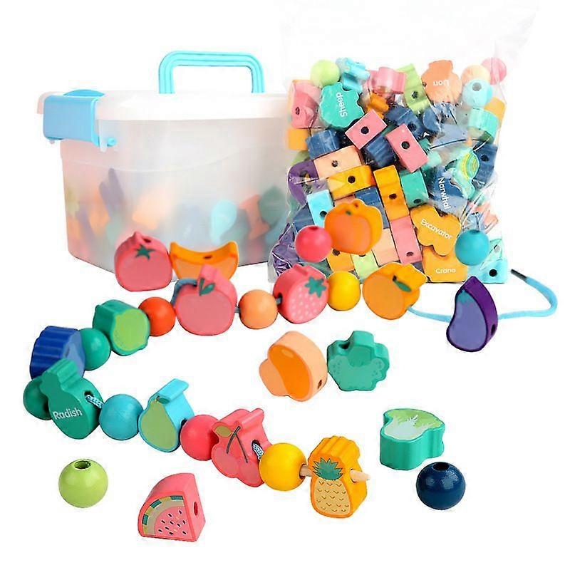1-Pack Wooden Children's Box Boys and Girls Beads Fruit Animal Cognition Baby Fine Motor Training Beaded Toys Early Education Parent-Child Interaction